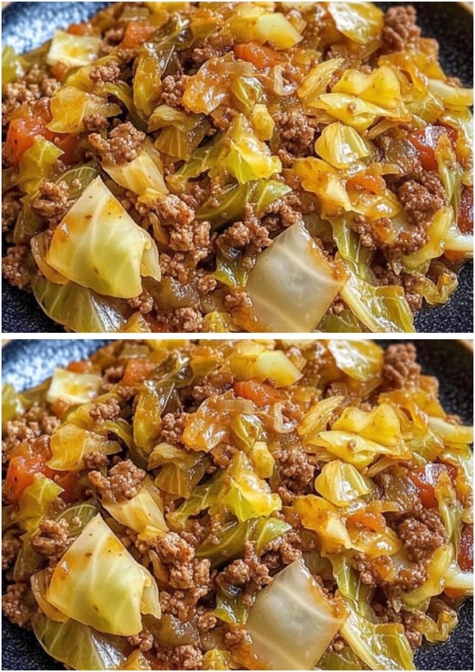 Den geschnittenen Kohl und die Tomaten zum Fleisch geben. Gut umrühren, damit sich alles gleichmäßig vermischt. Eventuell etwas Zucker oder Honig hinzufügen, um die Säure der Tomaten auszugleichen.