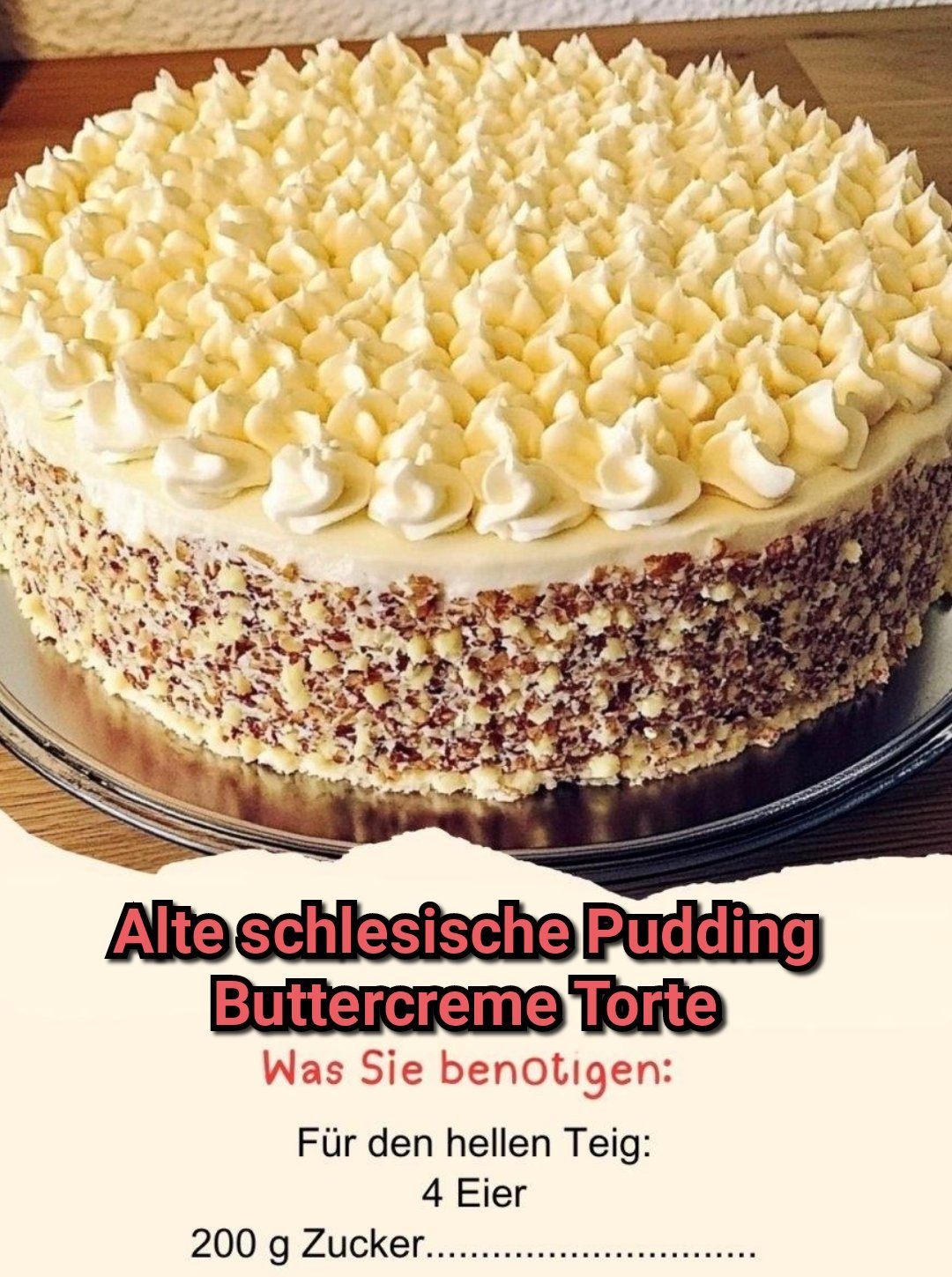 Ein alter schlesischer Klassiker, der seit Generationen auf Kaffeetafeln und Festen seinen Platz hat: die Pudding-Buttercreme-Torte. Dieses Rezept vereint alles, was eine traditionelle Festtagstorte ausmacht – luftige Biskuitböden, reichhaltige Buttercreme und eine feine Balance aus Vanille- und Schokoladengeschmack. Schon der erste Bissen weckt Erinnerungen an Sonntagnachmittage bei der Familie, an Feiertage oder Hochzeiten, bei denen diese Torte gerne serviert wurde.