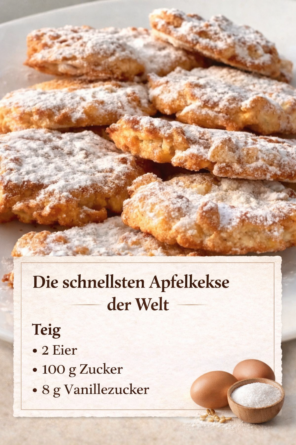 Wenn du Lust auf etwas Süßes hast, aber keine Zeit für aufwendiges Backen, dann sind diese Apfelkekse genau das Richtige für dich! Sie sind schnell gemacht, brauchen nur wenige Zutaten und schmecken einfach himmlisch. Super für spontane Gäste, gemütliche Nachmittage oder wenn dich plötzlich die Lust auf etwas Süßes packt.