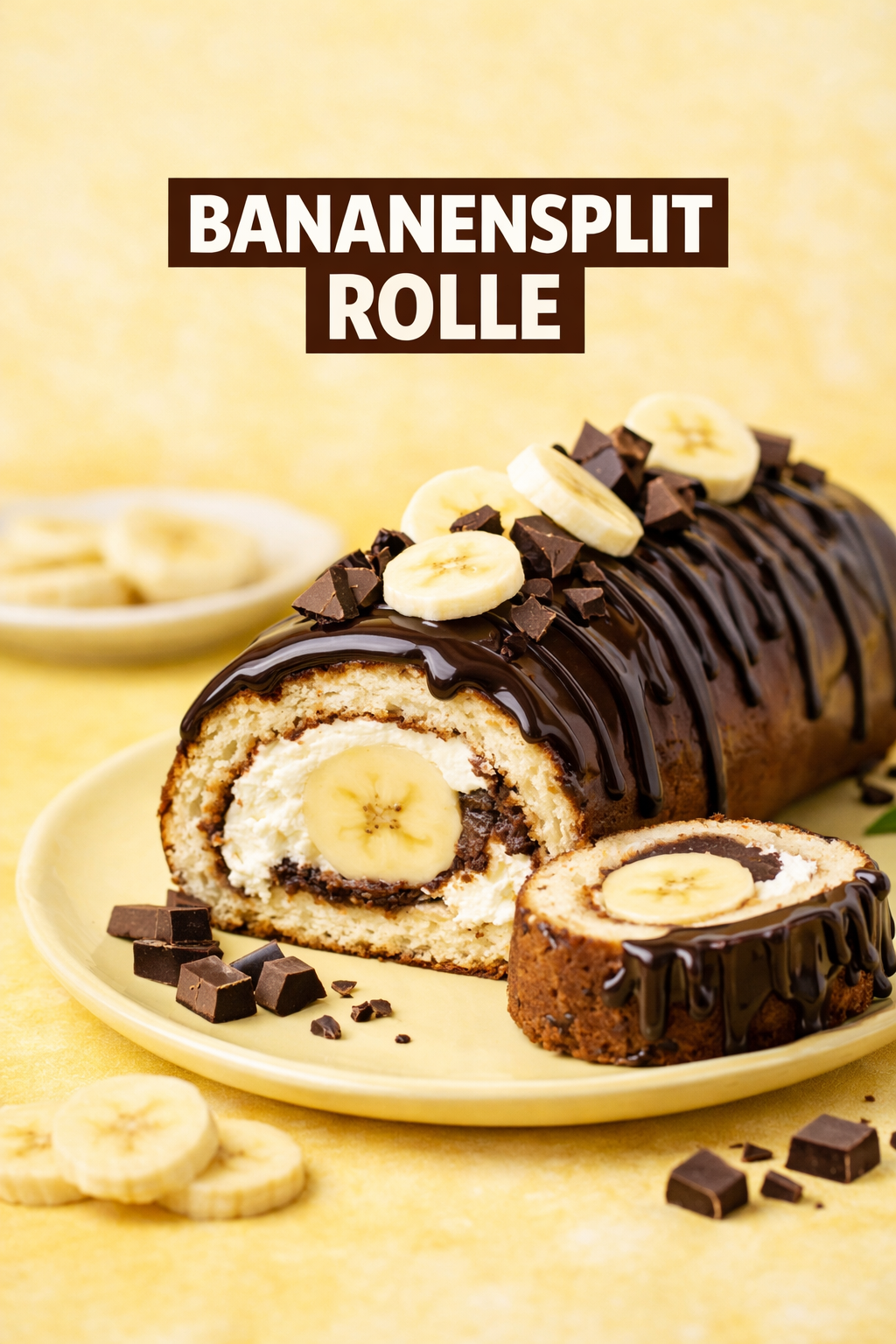 Diese Bananensplit Biskuitrolle ist einfach gemacht und richtig lecker 😍 Fluffiger Biskuit, süße Banane, cremige Sahne und feine Schokolade passen perfekt zusammen 🍌🍫 Das Rezept ist unkompliziert und gelingt ohne Probleme – ideal, wenn du schnell etwas Süßes zubereiten möchtest 🤤 Schmeckt immer gut und kommt bei allen super an 👍
