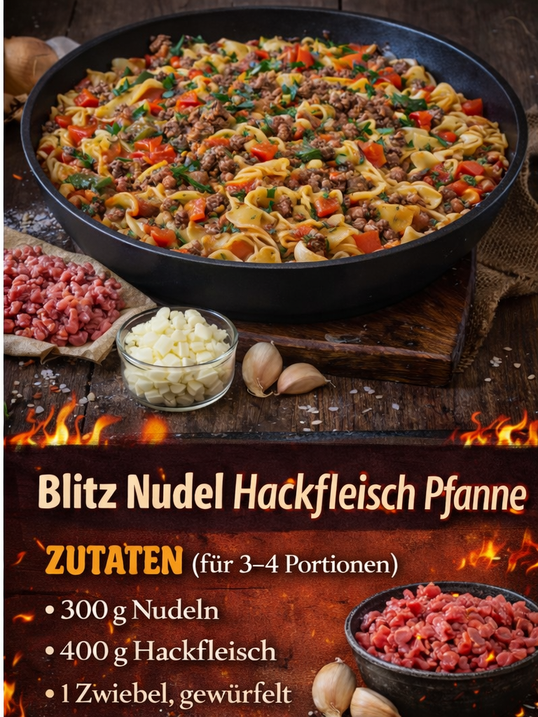 Blitz Nudel Hackfleisch Pfanne (15 Minuten)