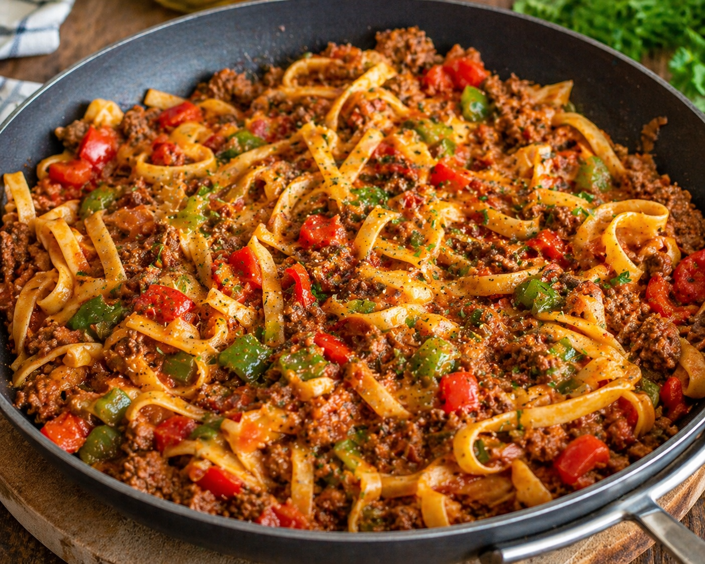 Schnell, würzig und unglaublich lecker – diese Nudel Hackfleisch Pfanne steht in nur 15 Minuten auf dem Tisch.