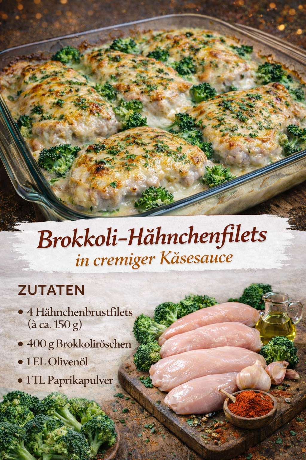 Dieses Brokkoli-Hähnchenfilet in cremiger Käsesauce ist ein echtes Wohlfühlgericht: