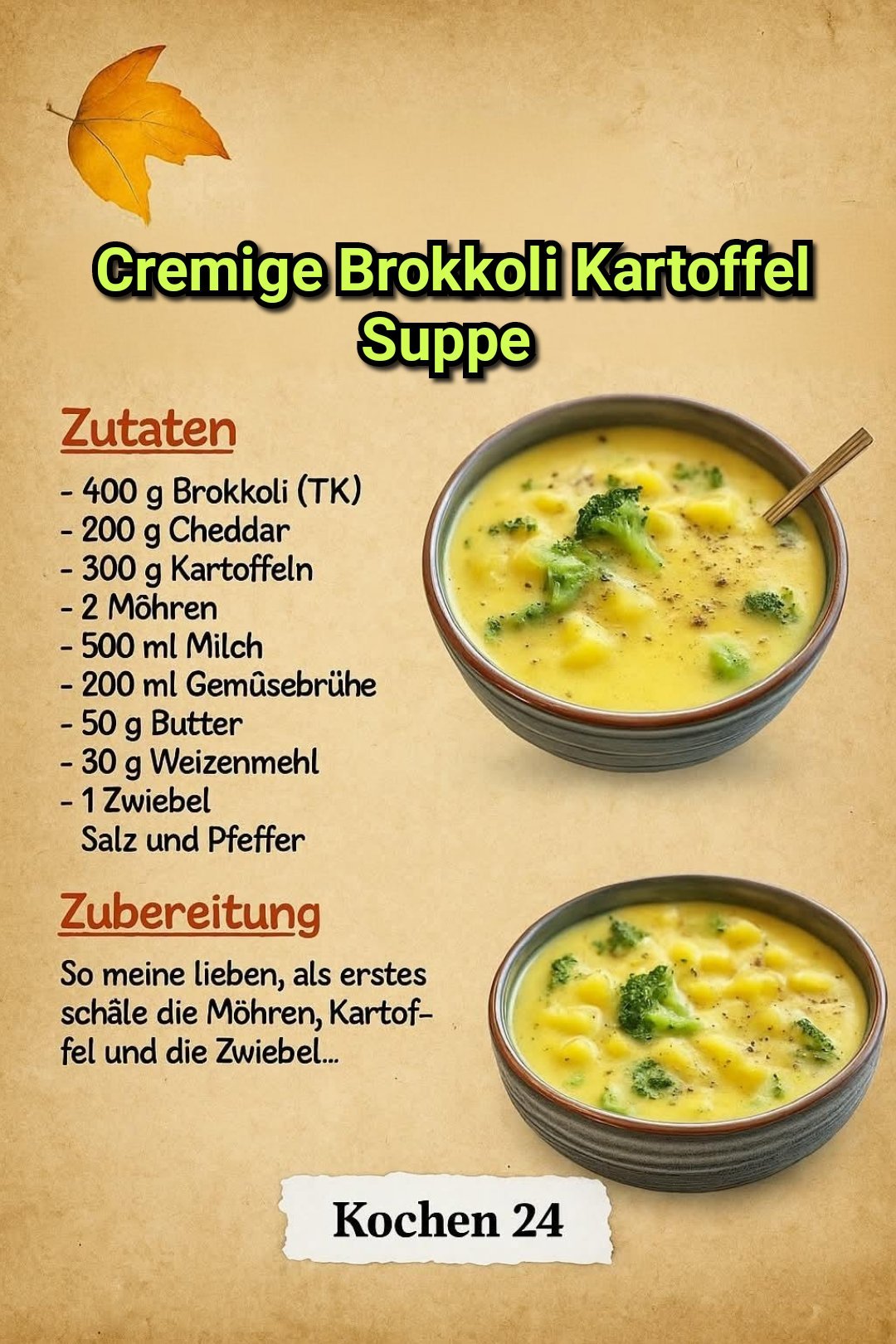 Danach Gieße die Milch und die Gemüsebrühe dazu. Füge den Brokkoli hinzu.