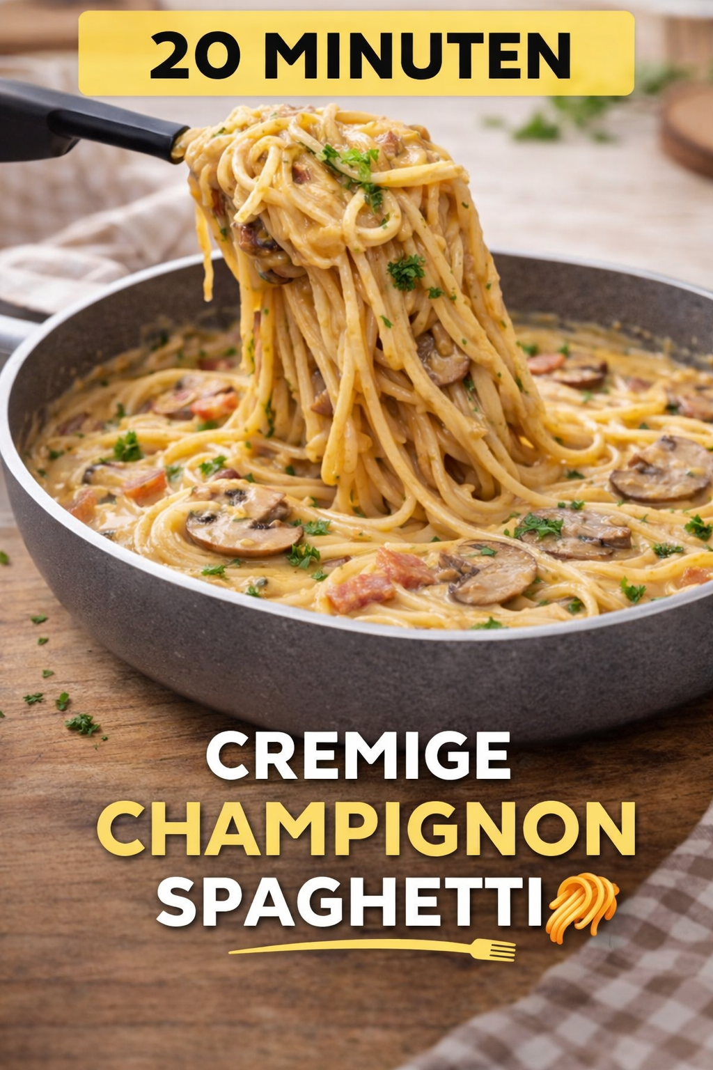 Champignons Spaghetti aus der Pfanne