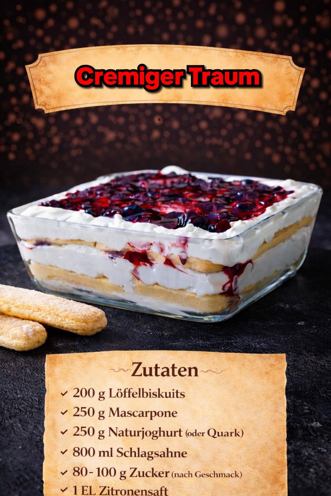 Mit einer dicken Cremeschicht abschließen und die restlichen Früchte oben verteilen.