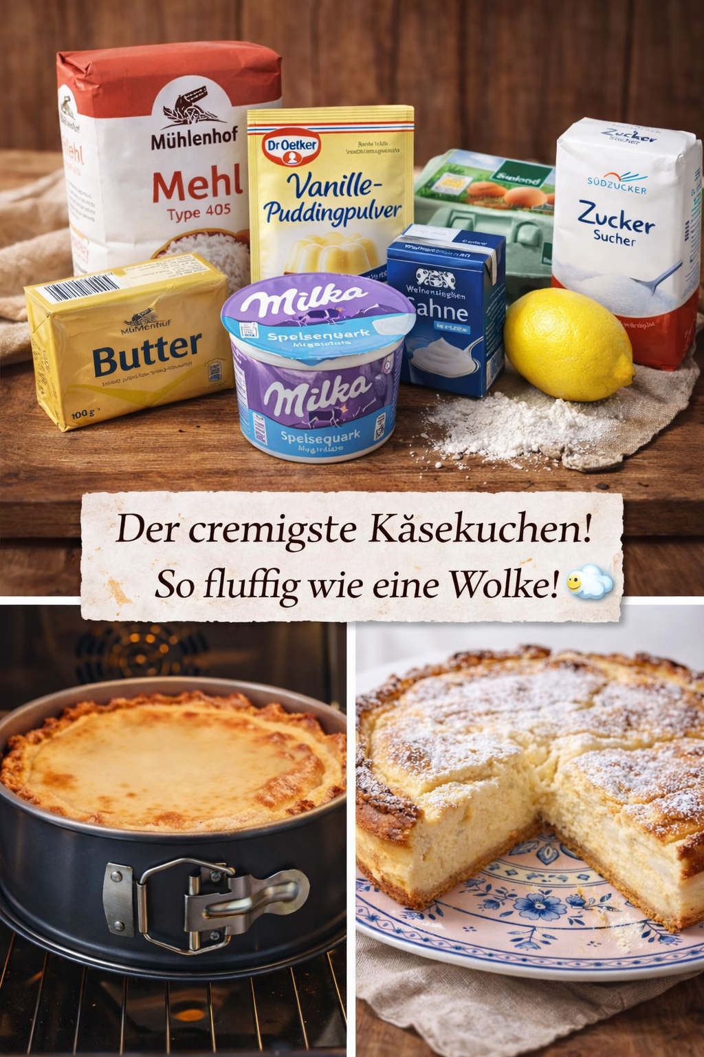 Nach ca. 30 Minuten mit einem scharfen Messer zwischen Quarkmasse und Teigrand ca. 3 cm tief entlangschneiden, dann fertig backen.