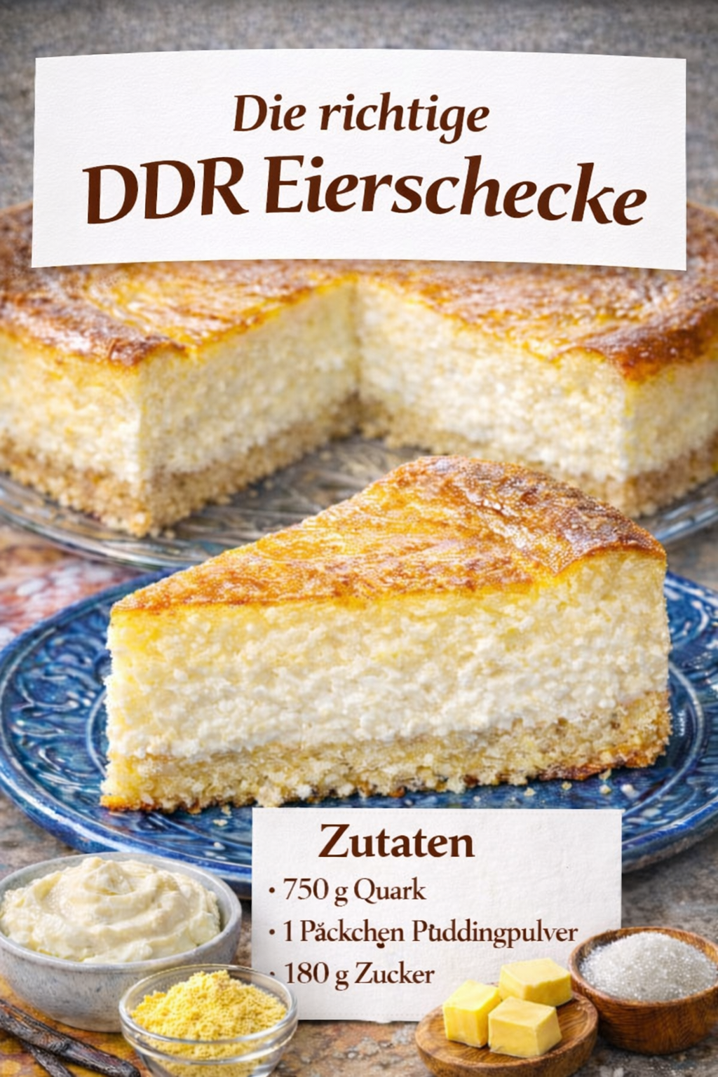 Quark, Zucker, Vanillezucker, Puddingpulver, Milch und Eier verrühren.