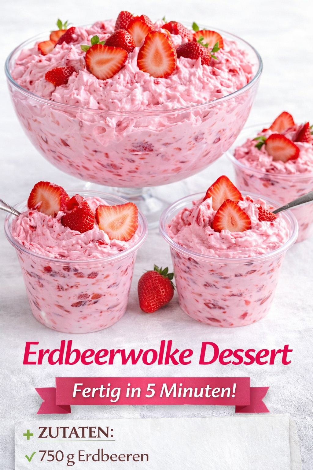 Wenn du ein schnelles, fruchtiges Dessert suchst, das unglaublich leicht und cremig ist, dann wirst du dieses Erdbeerwolke Dessert lieben 😍