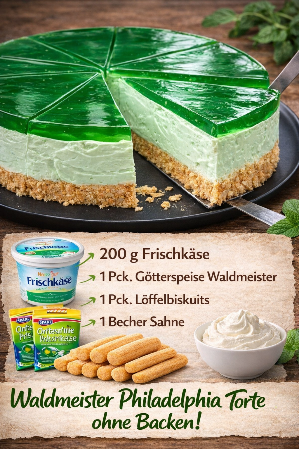 Diese Waldmeister Philadelphia Torte ohne Backen ist einfach ein Traum für alle, die schnelle und cremige Desserts lieben! 😍💚