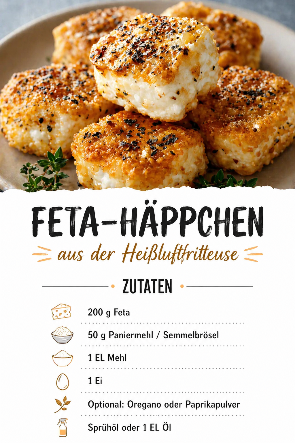 Feta-Häppchen aus der Heißluftfritteuse – knusprig, würzig und blitzschnell gemacht