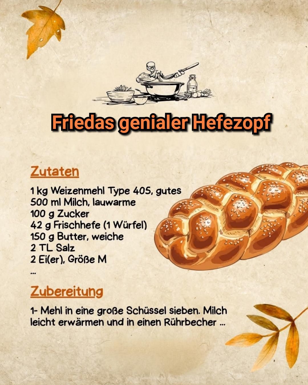 Für einen Zopf von 500 g einfach die Mengenangaben halbieren.