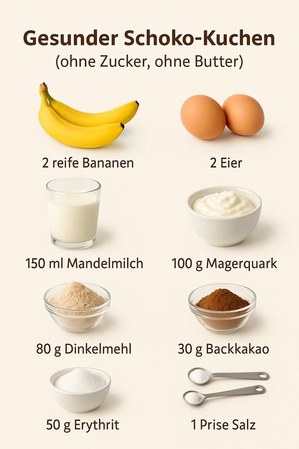 2 reife Bananen (oder 200 g Apfelmus, ungesüßt – als Alternative)