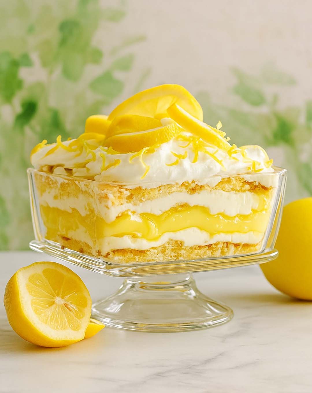 Kurz vor dem Servieren das Tiramisu mit der restlichen Zitronencreme beträufeln und gleichmäßig verteilen. Für eine frische und elegante Note mit Zitronenscheiben oder abgeriebener Schale garnieren. Dieses Zitronen-Tiramisu ist bis zu 4 Tage im Kühlschrank und bis zu 2 Monate im Gefrierschrank haltbar. Nach dem Einfrieren erhält es die köstliche Konsistenz eines gefrorenen Desserts.