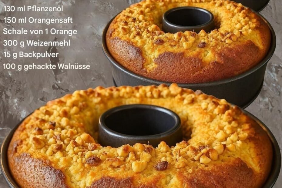 Die Masse in die vorbereitete Form geben und mit 30 g Walnüssen garnieren.