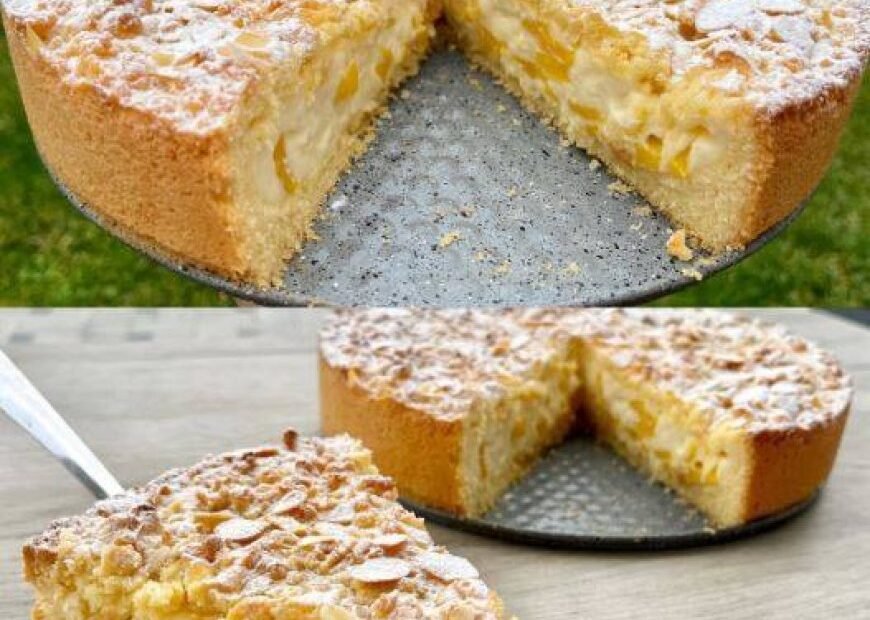 9. Danach legen Sie den Kuchen in den auf 180 °C vorgeheizten Ofen und backen Sie ihn etwa 40-45 Minuten lang oder bis der Teig goldbraun ist.