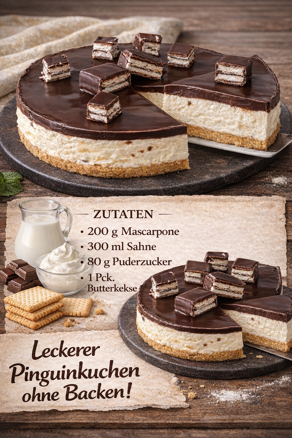 Dieser kalte Pinguinkuchen ohne Backen ist einfach der absolute Traum für alle Schoko-Fans 😍