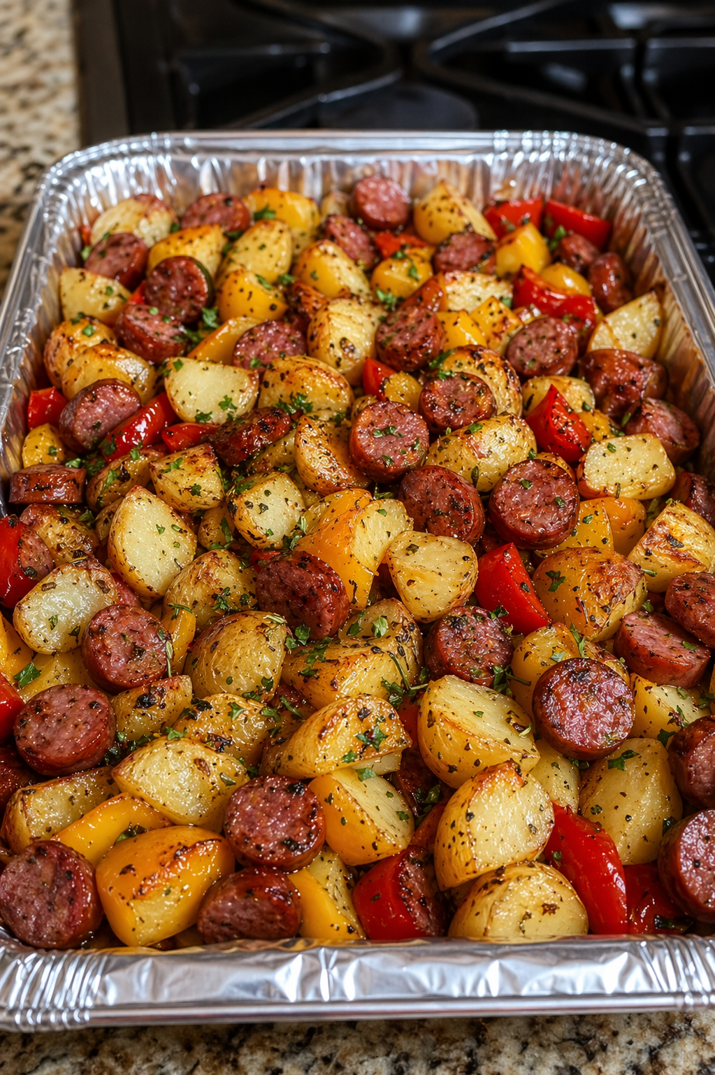 Dieser Kartoffel-Gemüse-Auflauf mit Rinderwurst ist ein einfaches, herzhaftes Ofengericht für die ganze Familie. Kartoffeln, Paprika, Zwiebeln und würzige Rinderwurst werden zusammen im Ofen gebacken, bis alles goldbraun, saftig und aromatisch ist.