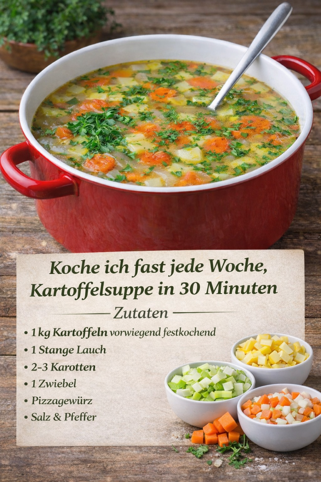Aufkochen lassen und ca. 20 Minuten köcheln, bis alles weich ist.