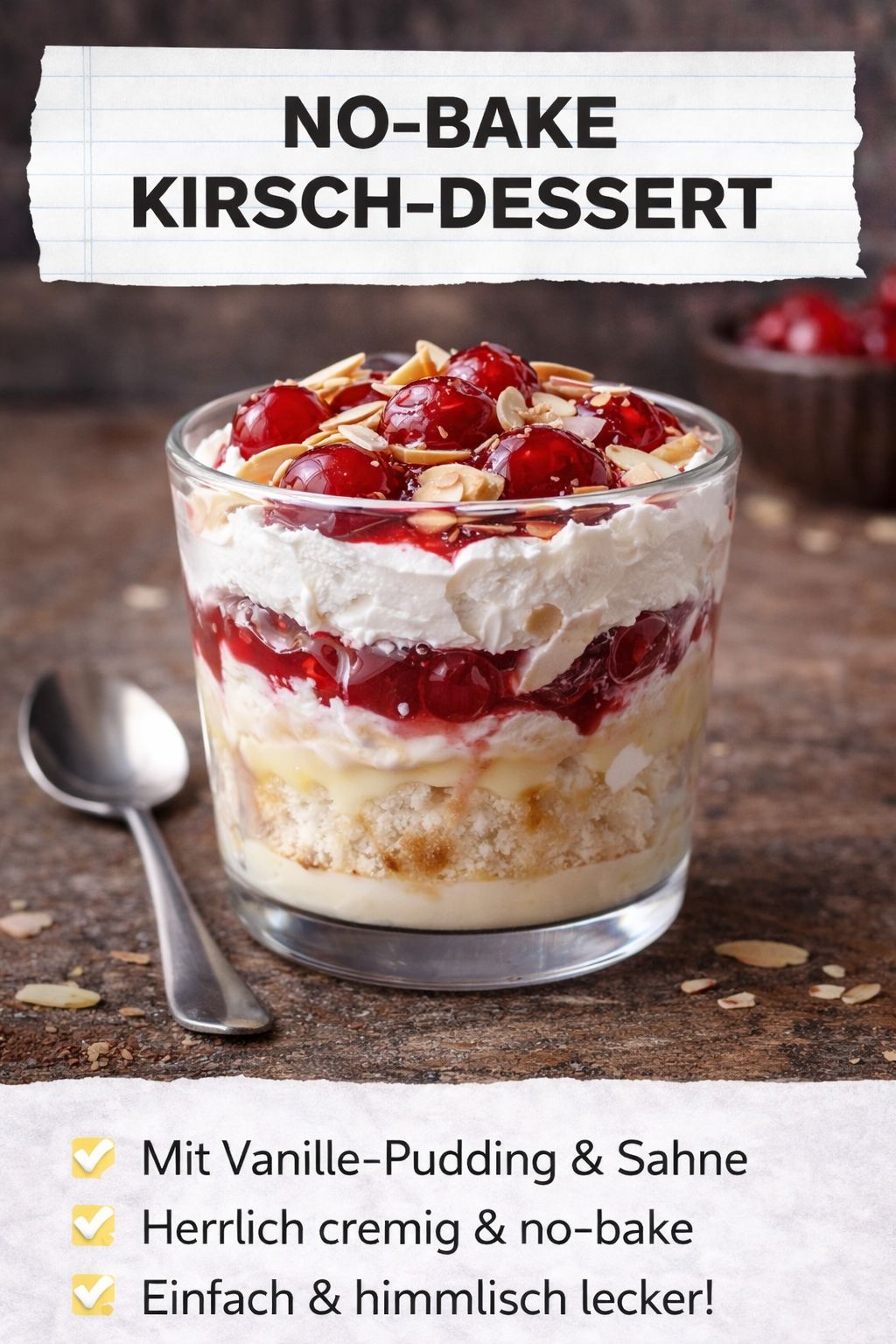 No-Bake Kirsch-Dessert mit Vanillepudding und Mandeln