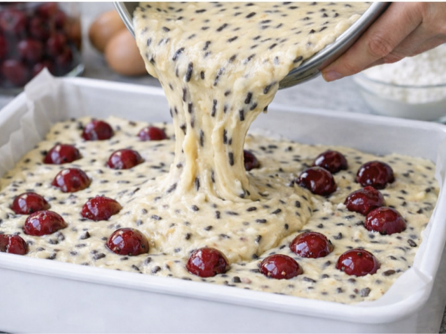 - Kirschen unterheben und die Masse abkühlen lassen.