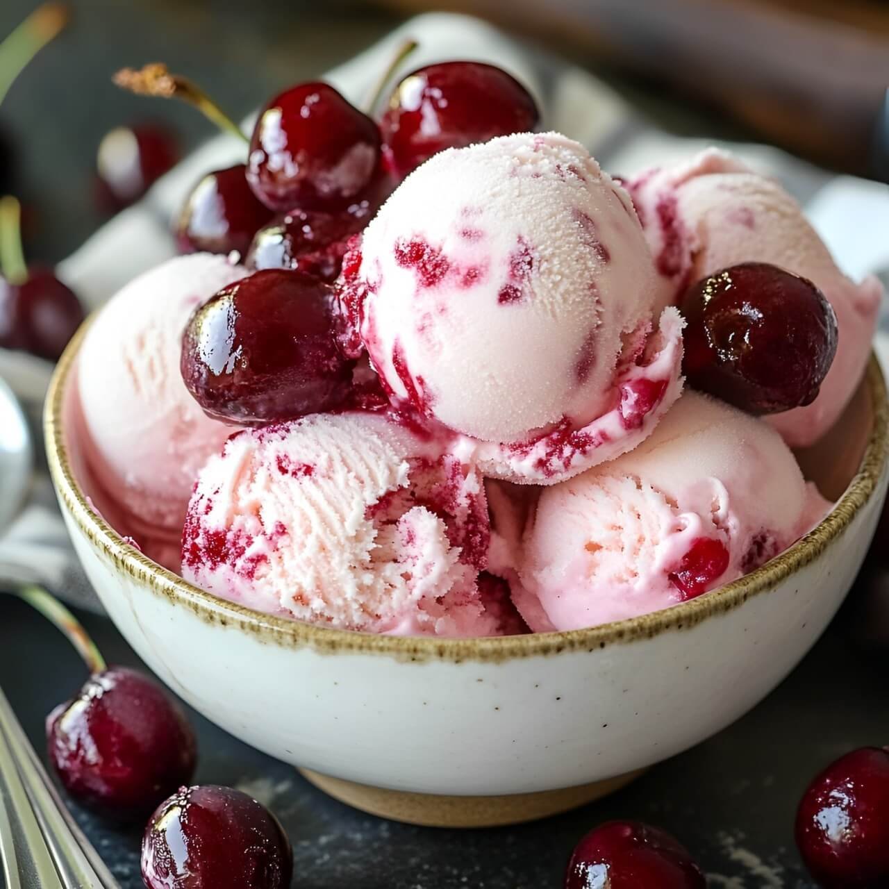 Genießen Sie dieses cremige, fruchtige Kirsch-Vanille-Eis als erfrischendes und leckeres Dessert!