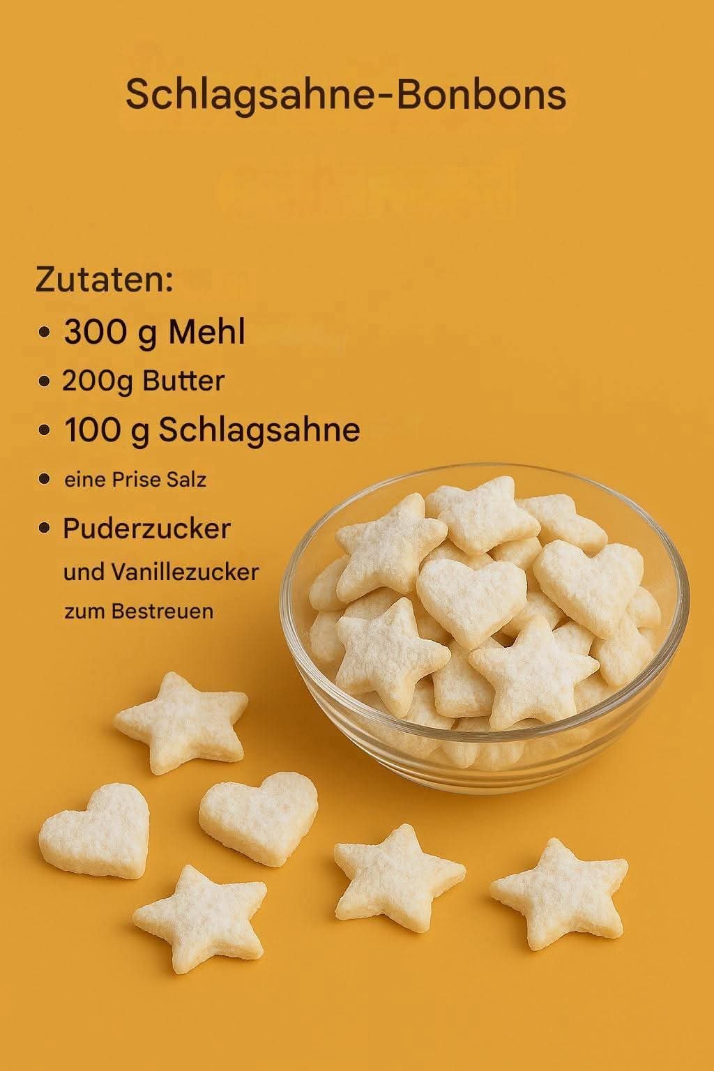 Mit Puderzucker und Vanillezucker bestreut, erhalten die Kekse eine angenehme Süße und einen unwiderstehlichen Duft.