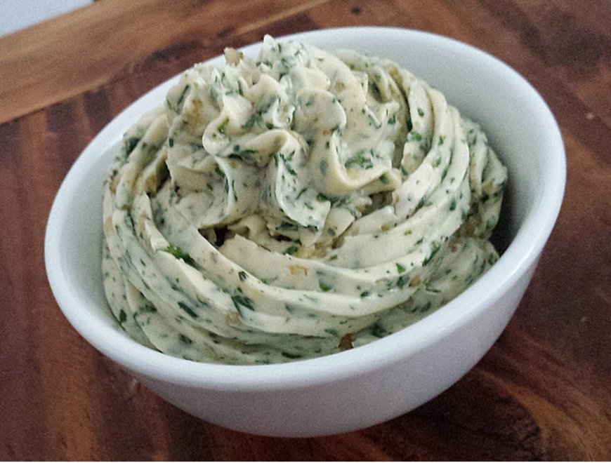 Die gehackten Kräuter hinzufügen und die Butter in Pergamentpapier (Butterbrotpapier) zur Rolle for