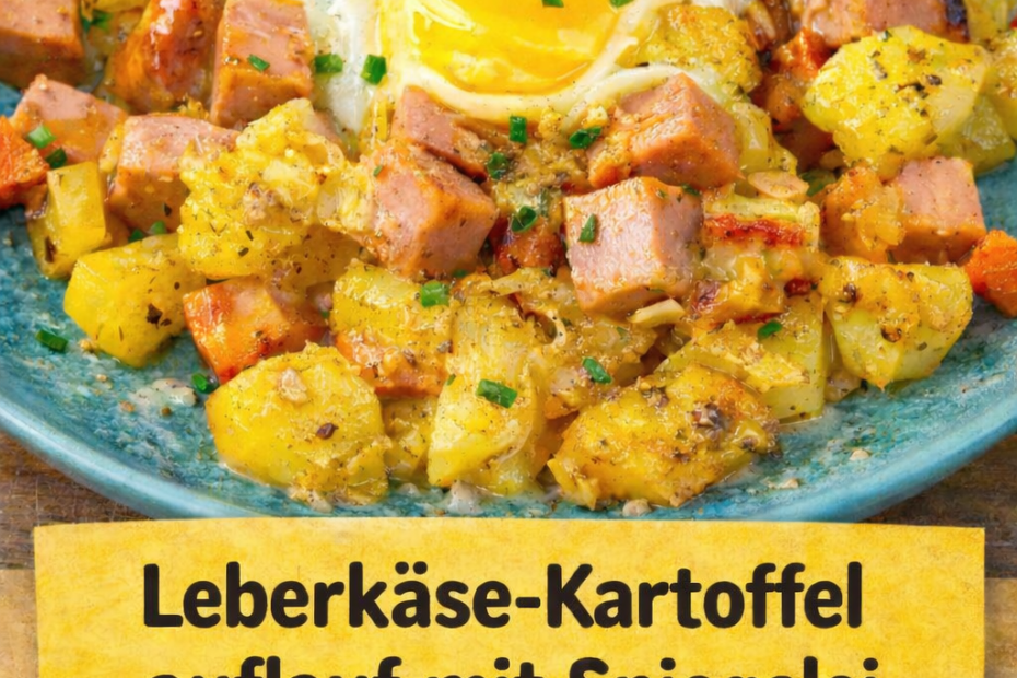 Leberkäse-Kartoffelauflauf mit Spiegelei