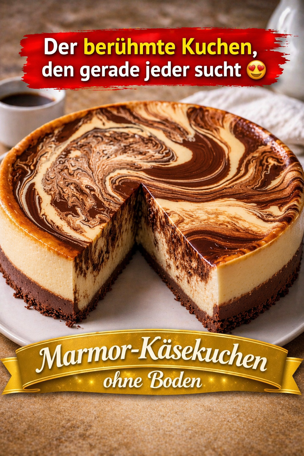 Dieser Marmor-Käsekuchen ohne Boden ist ein echter Hingucker und geschmacklich einfach unschlagbar. Cremig, schokoladig und unglaublich lecker – ein Rezept, das garantiert jeder lieben wird! 😍
