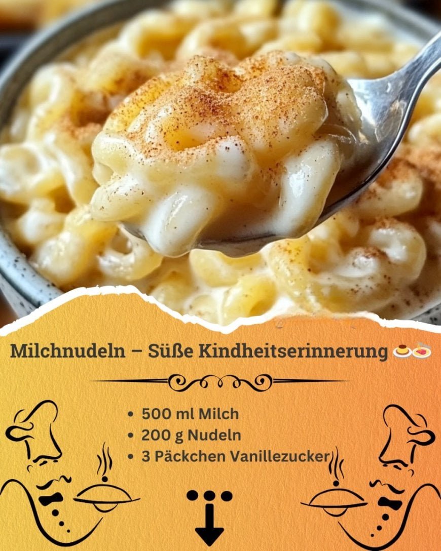 Manche Rezepte sind mehr als nur Essen – sie sind Erinnerungen, Wärme und Geborgenheit. Milchnudeln gehören genau dazu. Der Duft von warmer Milch, Vanille und Zimt erinnert an gemütliche Nachmittage, an Omas liebevolle Hände und an die unbeschwerte Kindheit.