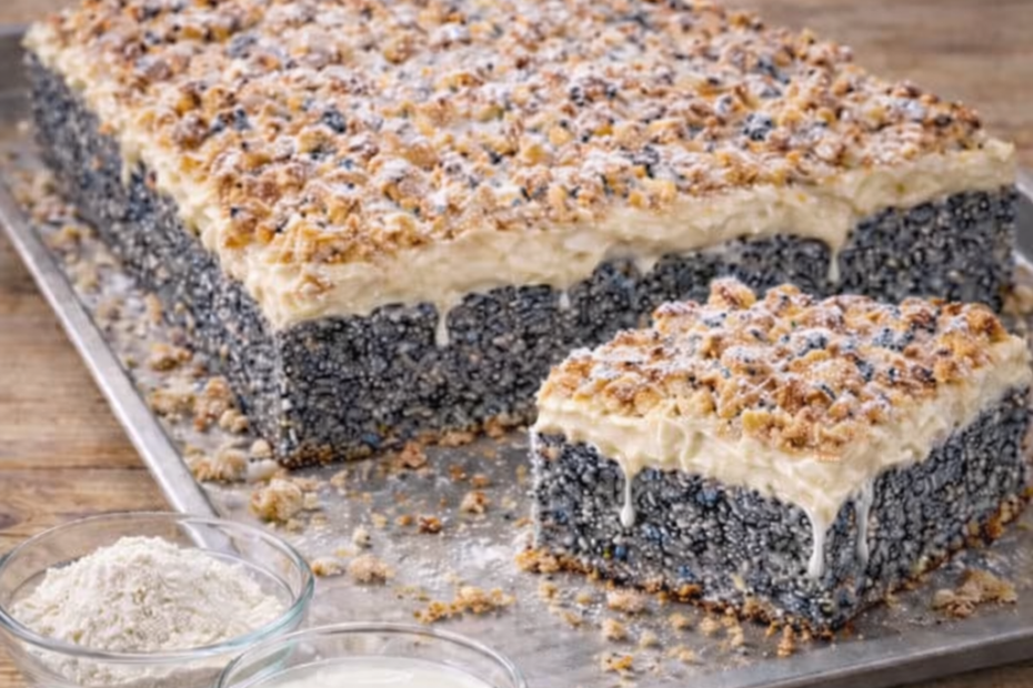 Nach Wunsch mit Puderzucker bestreuen und in Stücke schneiden.