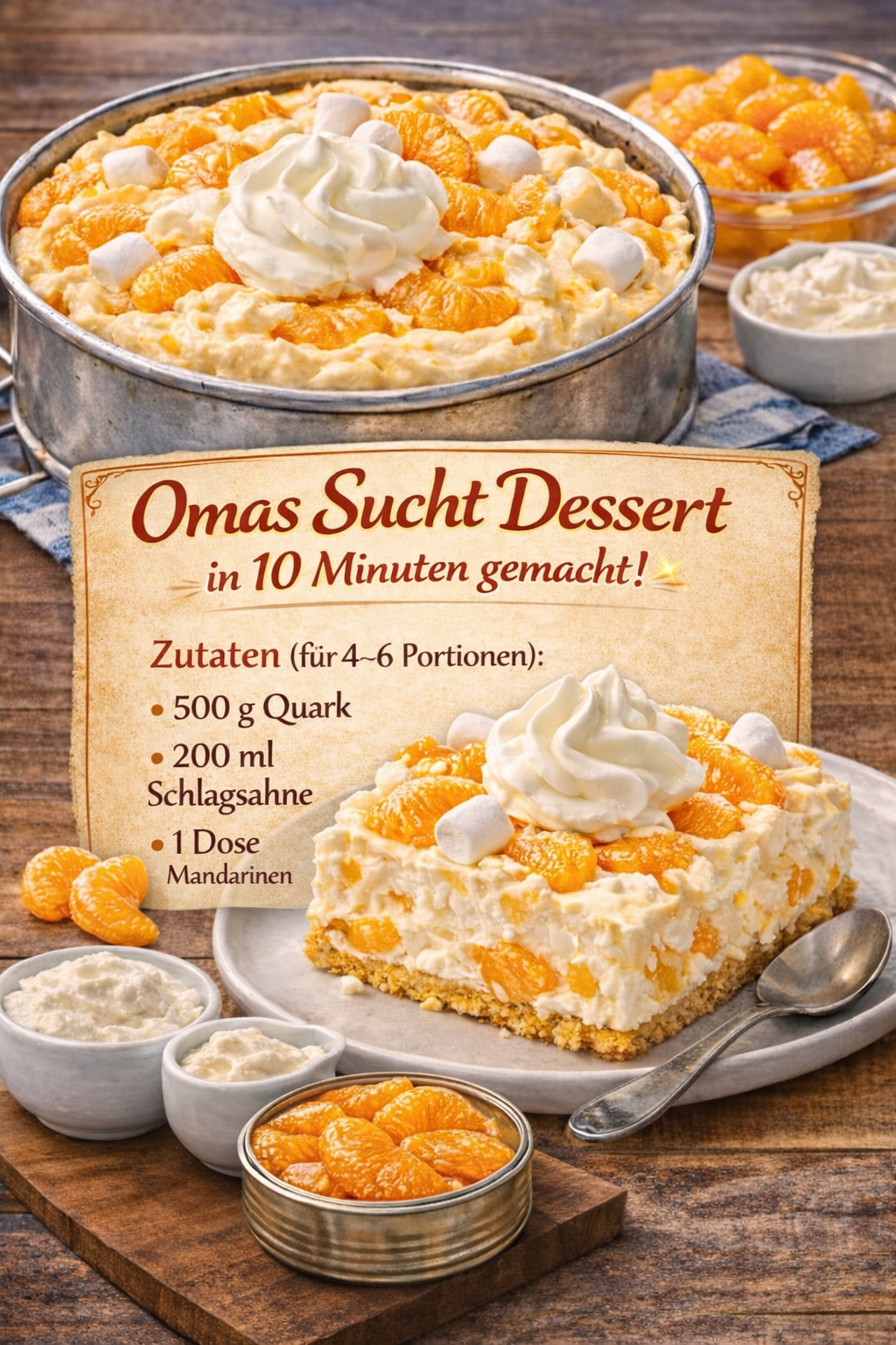 Mit den restlichen Mandarinen und nach Belieben Sahnetupfern garnieren.