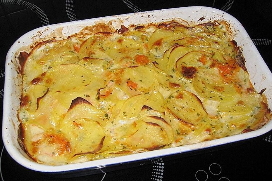 Zutaten Butter für die Form 1 Knoblauchzehe(n) 800 g Kartoffeln, festkochende 250 ml Sahne 250 ml Vollmilch Kräutersalz und Pfeffer, frisch gemahlen Muskat, frisch gerieben 1 EL Gemüsebrühepulver n. B. Butterflöckchen Zubereitung Eine flache Gratinform…