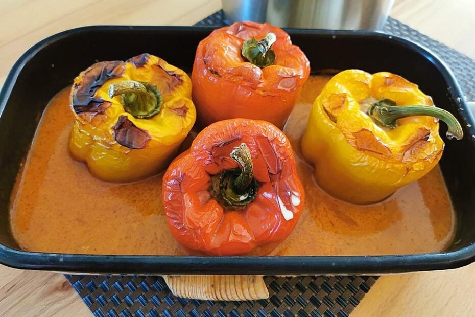 Zutaten 10 Spitzpaprika, gelbe, je nach Größe evtl. mehr 500 g Hackfleisch von Rind 100 g Reis, gekochter 1 Ei(er) 1 Zwiebel(n) 1 Zehe/n Knoblauch Salz und Pfeffer, schwarzer, aus der Mühle Paprikapulver 1 EL…