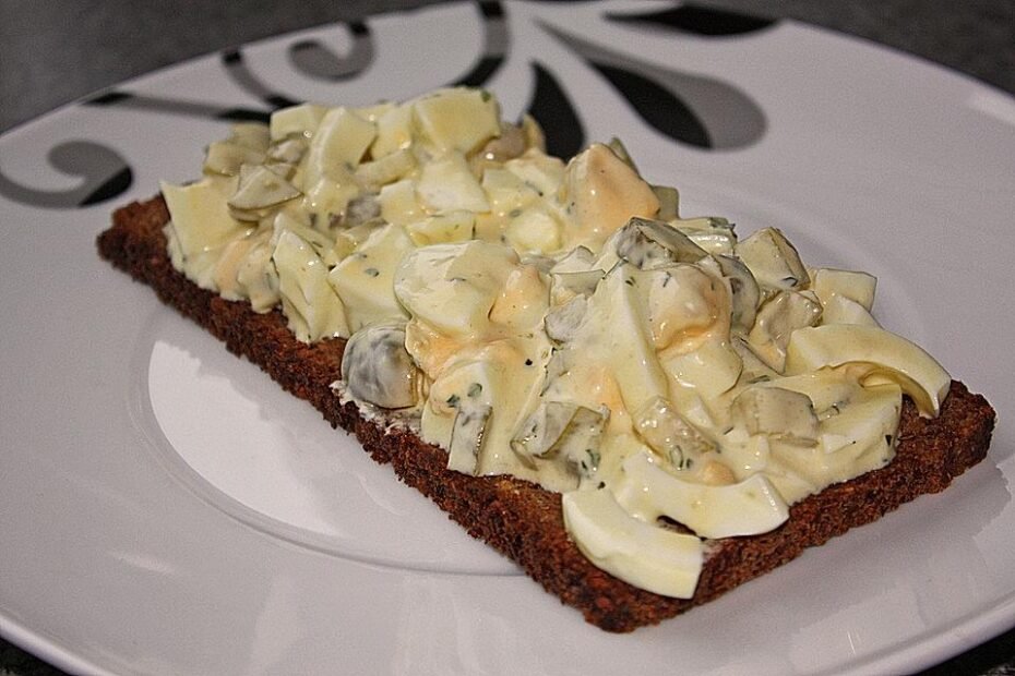 Zutaten 6 Ei(er), wachsweich gekochte 1 Becher Joghurt, 3,5% à 125 Gramm 1 EL Mayonnaise, 80% 2 TL Senf mittelscharf 1 TL Kapern, abgetropft 8 Cornichons, fein gehackt Salz und Pfeffer, frisch gemahlener 1 Zehe/n…