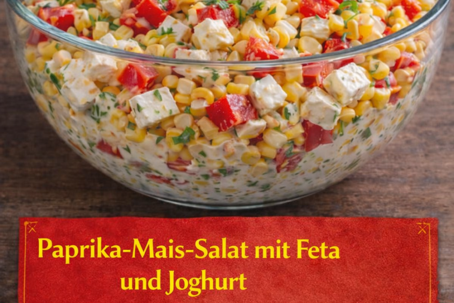 Mais, Paprika und Feta in eine große Schüssel geben.