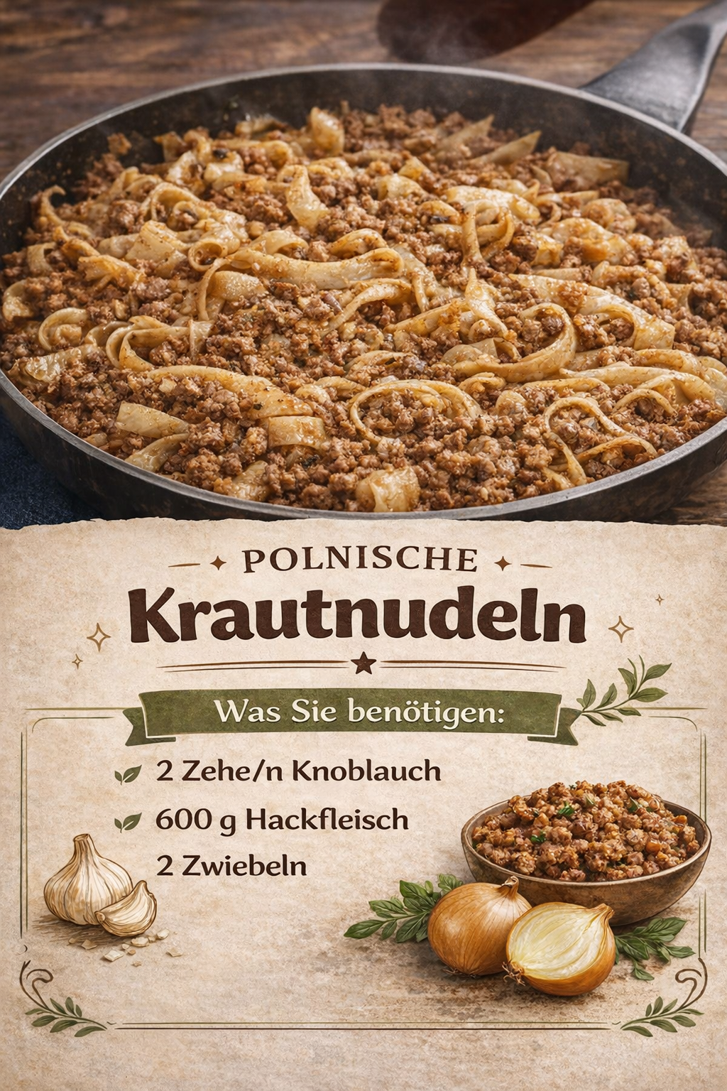 1. Zuerst die Zwiebeln, den Knoblauch klein wรผrfeln und mit dem Hackfleisch in etwas รl anbraten.