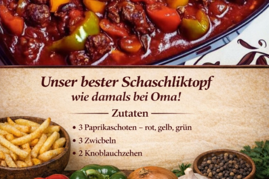 Zart geschmortes Rindfleisch, würzige Paprika und eine unglaublich aromatische Soße – dieser Schaschliktopf schmeckt herrlich herzhaft und ist perfekt für ein gemütliches Familienessen.