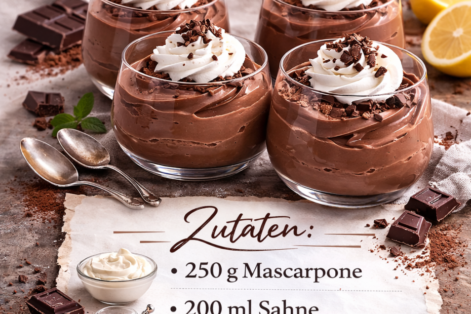6️⃣ Vor dem Servieren optional mit Kakaopulver, Schokoraspeln oder Früchten garnieren.