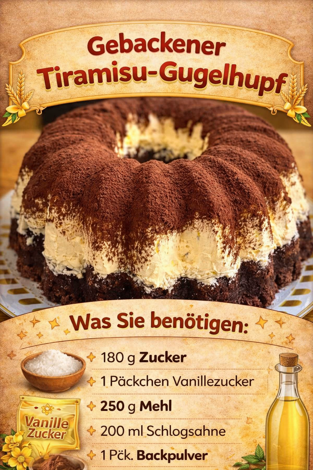 Dieser Tiramisu-Gugelhupf vereint den beliebten Geschmack des klassischen Desserts mit der Form eines saftigen Kuchens. Er ist wunderbar locker, herrlich aromatisch und begeistert mit feinen Kaffee- und Kakaonoten. Perfekt für Gäste, besondere Anlässe oder einfach zum Genießen am Wochenende. Ein Rezept, das schnell gemacht ist und garantiert für Begeisterung sorgt.