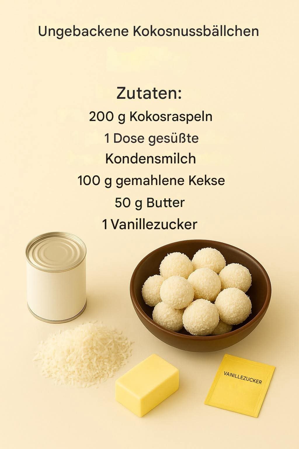 200 g Kokosraspeln (plus etwas zum Wälzen)