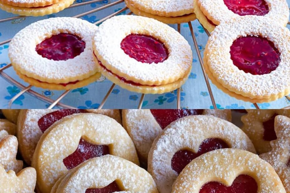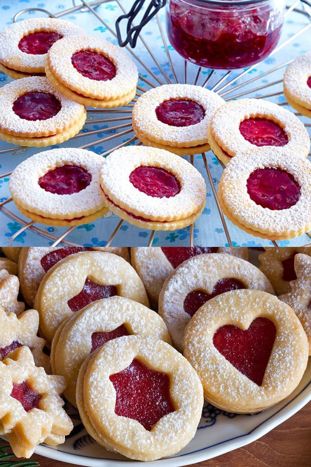 Auskühlen lassen und mit Konfitüre zusammenkleben. Mit Puderzucker bestäuben und servieren.