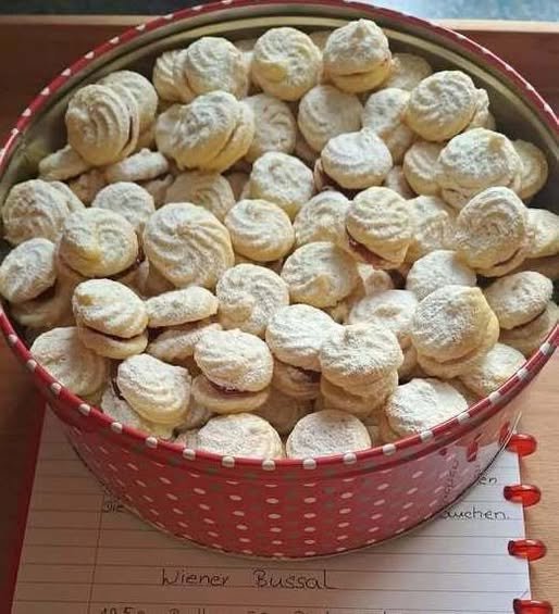 Erkaltet je 2 mit Marmelade zusammensetzen und mit Staubzucker bestreuen.