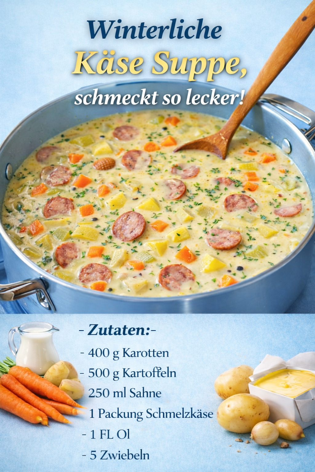Diese winterliche Käsesuppe ist das perfekte Gericht für alle, die es warm, cremig und herzhaft lieben. Schnell gemacht, unglaublich lecker und ideal für die kalte Jahreszeit – ein echtes Lieblingsrezept!