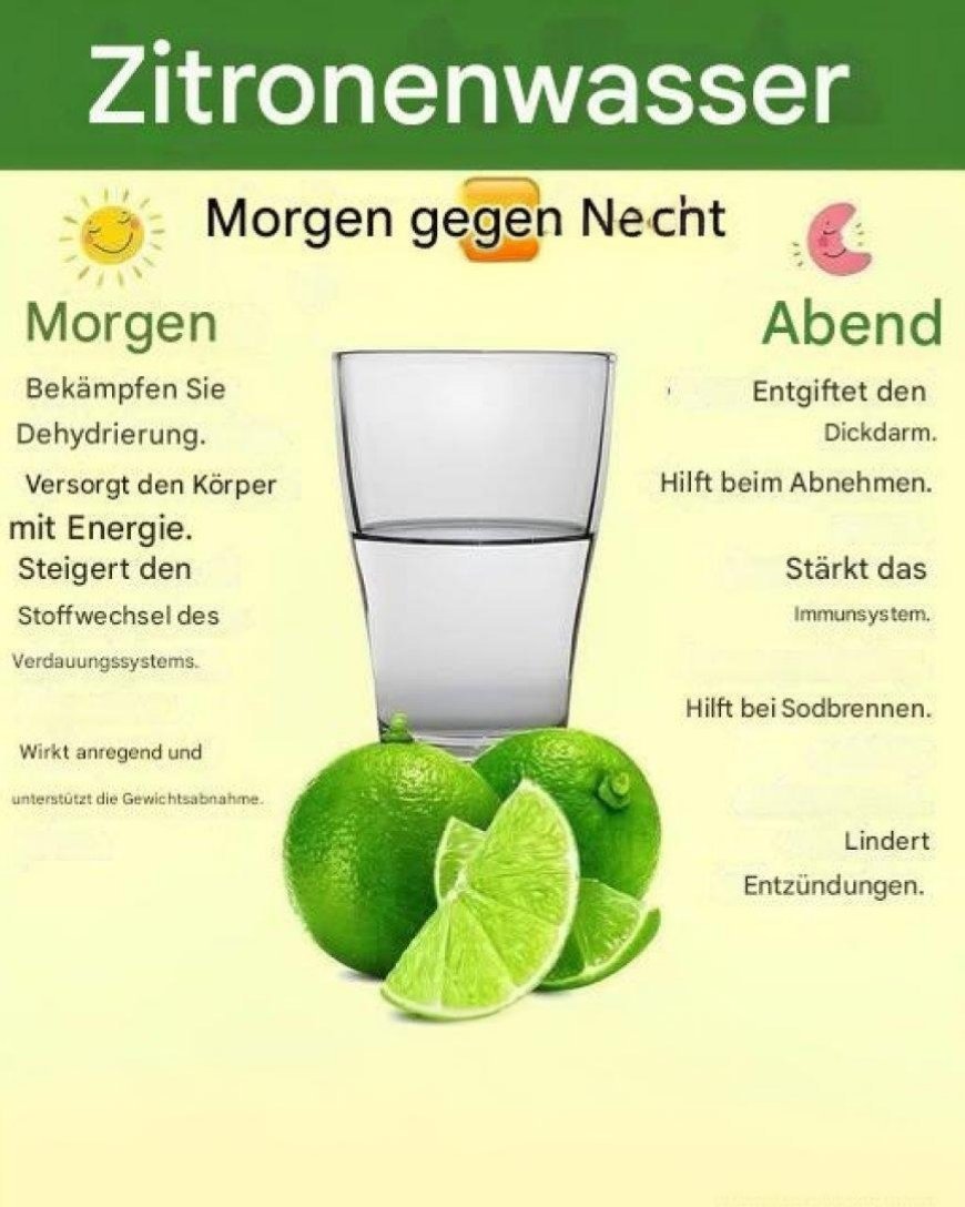 Sich anzugewöhnen, morgens und abends Zitronenwasser zu trinken, ist eine einfache, kostengünstige und wirksame Methode, etwas für den Körper zu tun. Es verbessert die Verdauung, stärkt das Immunsystem, fördert die Flüssigkeitszufuhr und hilft, den Körper auf natürliche Weise zu reinigen. Eine kleine tägliche Maßnahme, die langfristig große Ergebnisse bringt.